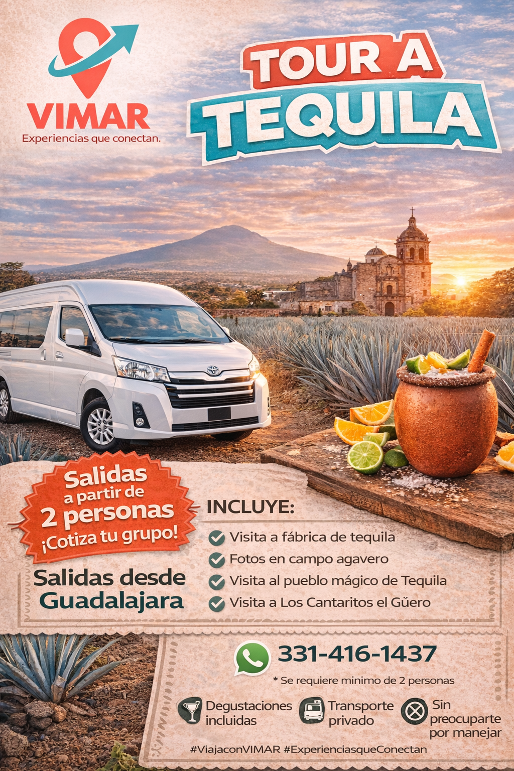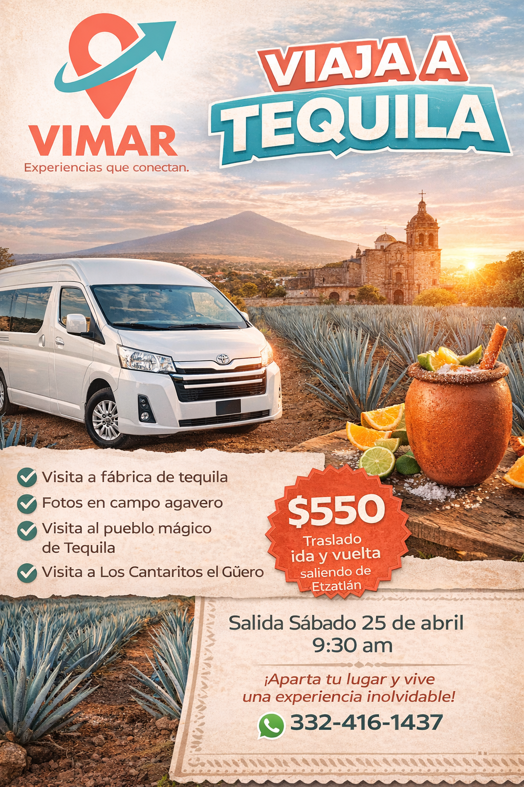 Salida Etzatlán Tequila Precio $550.00 Salida de Etzatlán JaliscoVisita a fábrica de TequilaFotos en campo agaveroPueblo mágico de TequilaCantaritos el Güero Reserva