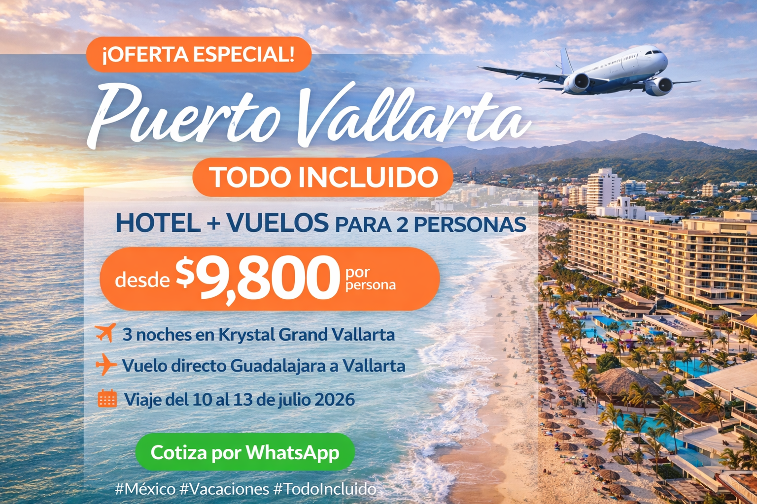 Crown Paradise Golden puerto vallarta - todo incluido 3 Noches de hotel + Vuelo redondo. Guadalajara- Puerto Vallarta Reserva aquí